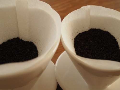 三洋産業さんの大小のドリッパーに、18gずつ入れてみました。