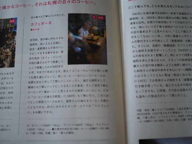 斉藤珈琲さんをはじめ、札幌市内のコーヒー焙煎店全6店が掲載されています。