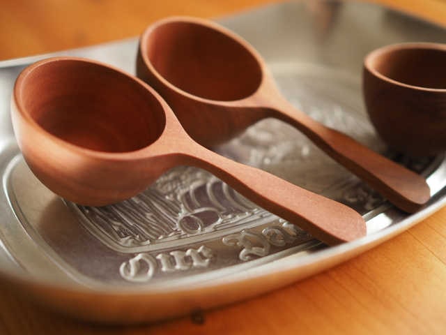丸いカタチが優しい雰囲気の、木製のメジャースプーンです。