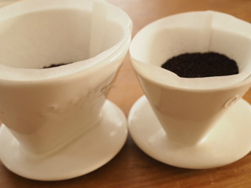三洋産業さんの大小のドリッパーに、18gずつ入れてみました。