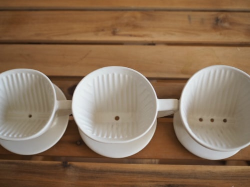 ただ、お湯通りの良さ(抽出時間)、好みの味、扱いやすさなどトータルに考えると、当店では三洋産業さんの磁器製が美味しく抽出でき、かつ使いやすいように感じます。